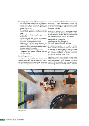 her expectations and that the experience was as study visits, peer exchanges, meetings with profes-